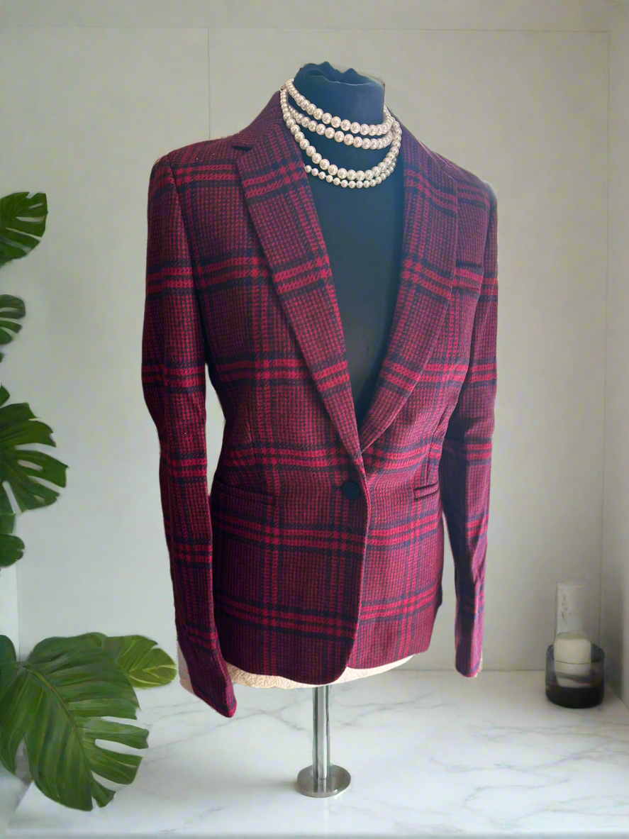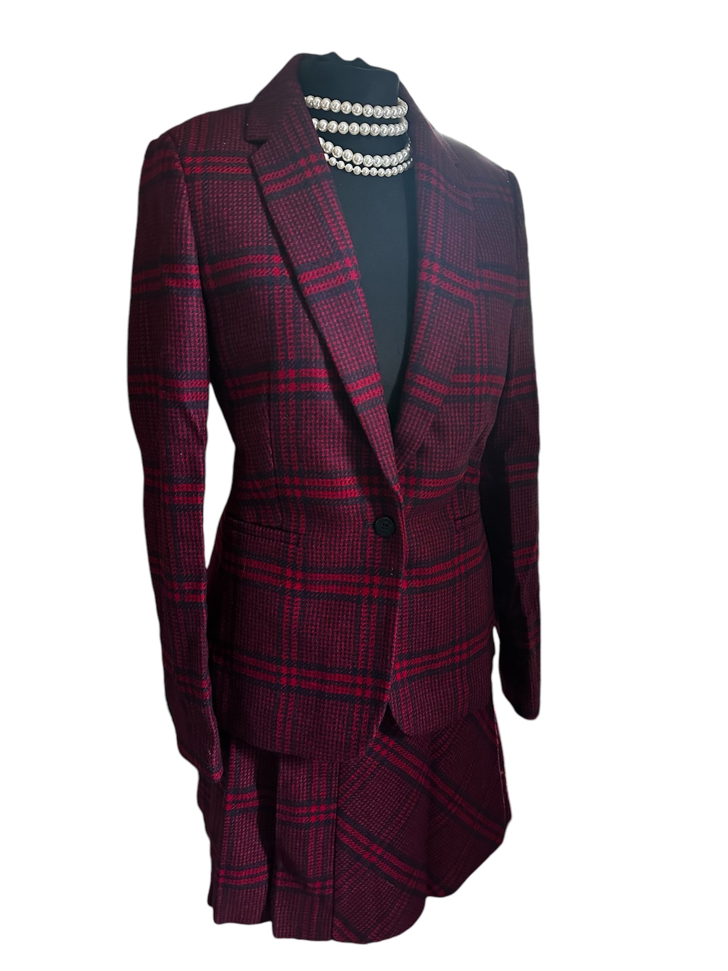 Hobbs New Tweed Burgundy Skirt Suit UK Size 10