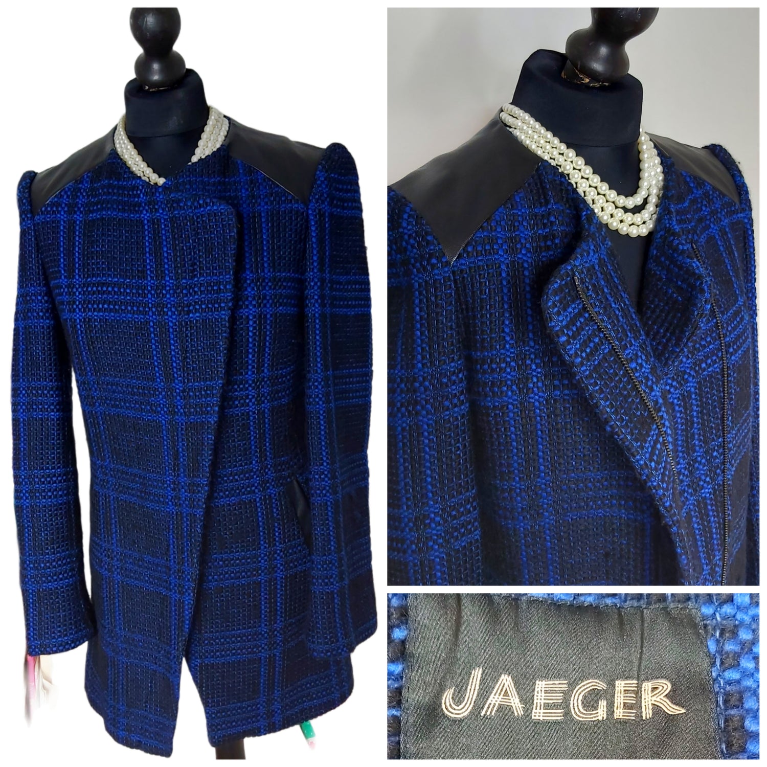 JAEGER 100% Leather Coat Jacket Wool blue Double breasted size 12.