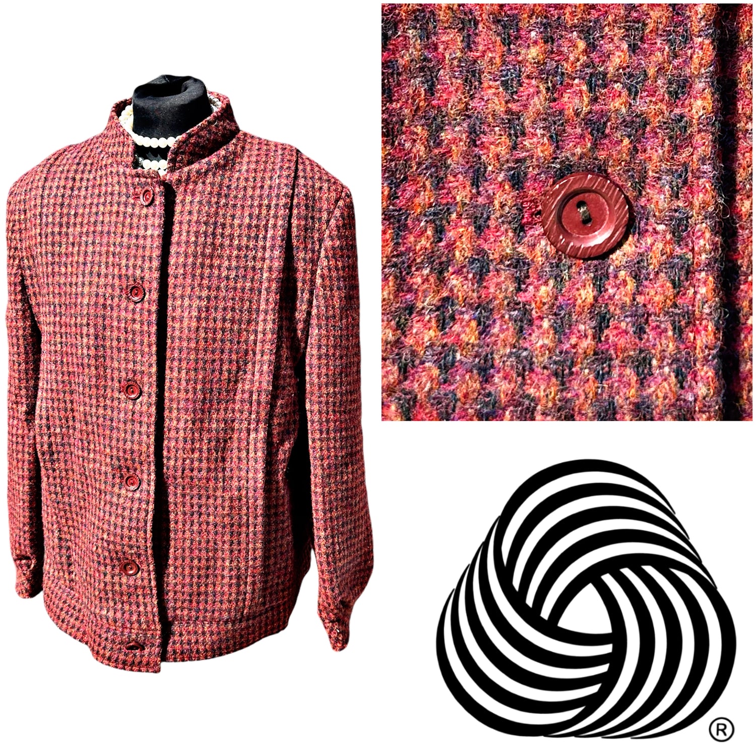 Ladies 100% Shetland Wool Vintage Burgundy Tweed Coat/Jacket