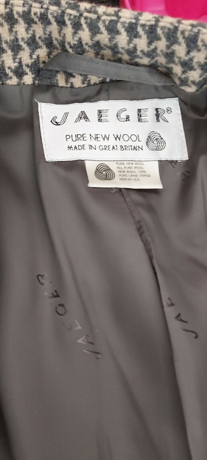 Ladies Jaeger 100% wool Houndstooth checked Tweed Jacket Coat UK Size 14